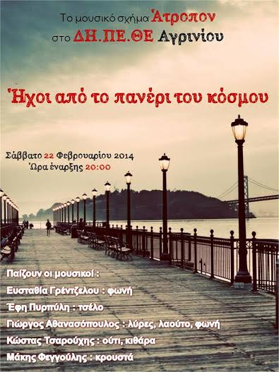 Το Σάββατο 22 Φεβρουαρίου 2014 και ώρα 8 μμ, στο Δη.Πε.Θε. Αγρινίου