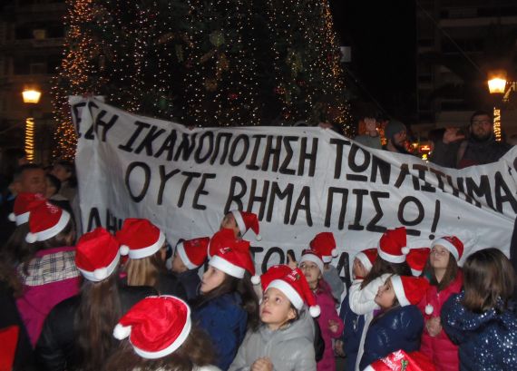 φοιτητέςTo εφετινό άναμμα του χριστουγεννιάτικου δένδρου στο Αγρίνιο συνδυάστηκε από την διαμαρτυρία των φοιτητών των πανεπιστημιακών τμημάτων του Αγρινίου.