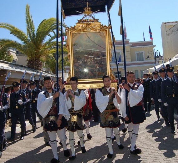 Μετά την επίσημη υποδοχή, ακολούθησε επιμνημόσυνη δέηση και κατάθεση στεφάνων στο Μνημείο των Φιλελλήνων και στον Τύμβο του Κήπου των Ηρώων. Αμέσως μετά, η Εικόνα της Εξόδου, το Ιερό Λάβαρο και ο Τίμιος Σταυρός Αγιασμού του Επισκόπου Ιωσήφ Ρωγών, μεταφέρθηκαν με τιμές στον Μητροπολιτικό Ναό Αγίου Σπυρίδωνος, ενώ ακολούθησαν επιμνημόσυνη δέηση και καταθέσεις στεφάνων στα Μνημεία Ιωάννη Ιάκωβου Μάγερ, Λόρδου Βύρωνα και Επισκόπου Ιωσήφ Ρωγών.