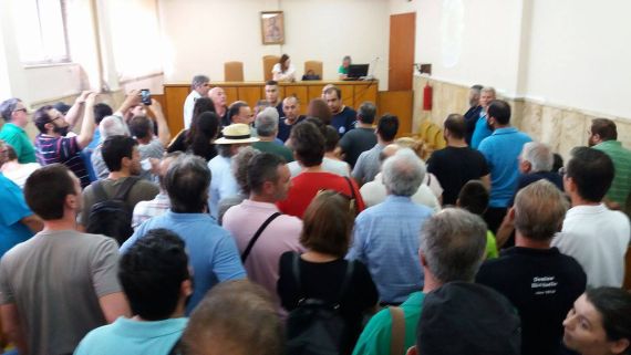 Νέα ματαίωση τριών πλειστηριασμών επαγγελματικής στέγης συνέβη, σήμερα Τετάρτη 19 Ιούλη, στο Αγρίνιο.Στα Δικαστήρια είχε συγκεντρωθεί από τις 3 το μεσημέρι πολύς κόσμος, μετά από κάλεσμα της Νομαρχιακής Επιτροπής Αιτωλ/νίας της ΛΑΪΚΗΣ ΕΝΟΤΗΤΑΣ και του Σωματείου της πόλης «Δικαίωμα στη Ζωή». Ενεργητική ήταν η παρουσία του Εμπορικού συλλόγου της πόλης δια του προέδρου του και μελών του Δ.Σ., της Ομοσπονδία Επαγγελματιοβιοτεχνών Αιτωλ/νίας διά του προέδρου της. Παρών ήταν κι ο Πρόεδρος της Β ΕΛΜΕ Αιτωλ/νίας και πολλοί ενεργοί πολίτες του Αγρινίου και της γύρω περιοχής, καθώς και πολλοί έμποροι- επαγγελματοβιοτέχνες.