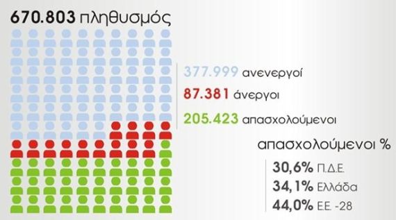 Mία ενδιαφέρουσα έρευνα παρουσίασε η DATA RC στο 5ο Αναπτυξιακό Συνέδριο της εφημερίδας “Πελοπόννησος” το Σαββατοκύριακο που πέρασε στην Πάτρα. Ο συγκεκριμένος πίνακας δείχνει γλαφυρά το πρόβλημα της Περιφέρειας Δυτικής Ελλάδος και κατ΄επέκταση το πρόβλημα της χώρας συνολικά. Όταν μόνο το 30% του πληθυσμού είναι οι απασχολούμενοι, όταν το 70% του πληθυσμού είναι εκτός παραγωγικής διαδικασίας, τότε αυτή η αναλογία φανερώνει όχι μόνο το μέγεθος της ανεργίας, αλλά και το δημογραφικό πρόβλημα της χώρας καθώς επίσης και σημαντικές πτυχές του ασφαλιστικού προβλήματος. Και φυσικά αν δεν υπάρξει αναστροφή του κλίματος, μία τέτοια αναλογία δεν μπορεί να είναι βιώσιμη για μεγάλο χρονικό διάστημα.