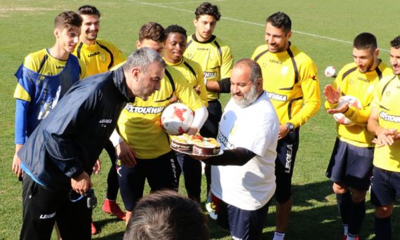 Ο «Κολοσσός» έγινε 42 ετών και τα γενέθλια του τον βρήκαν στο… χώρο εργασίας. Στο προπονητικό κέντρο του Παναιτωλικού, Emileon. Μετά το τέλος της προπόνησης οι ποδοσφαιριστές του ετοίμασαν μια μικρή έκπληξη, προσφέροντας τούρτα γενεθλίων ευχόμενοι χρόνια πολλά. Ο τεχνικός της ομάδας του Παναιτωλικού τους ευχαρίστησε τονίζοντας την ικανοποίησή του για την διάθεση που δείχνουν και την προσπάθεια που καταβάλλουν καθημερινά.