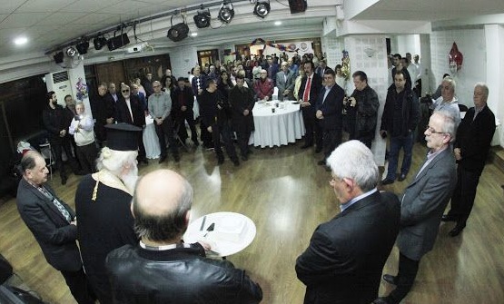 Στη συνέχεια ο Πρωτοπρεσβύτερος του Ιερού ναού Αγίου Σπυρίδωνα Πειραιά Βασίλειος Πόπης, ευλόγησε την πρωτοχρονιάτικη πίτα και τα μέλη του Κ.Σ. την έκοψαν και την μοίρασαν στους Συλλόγους μέλη της Ομοσπονδίας καθώς και σε όλους τους παρευρισκόμενους.