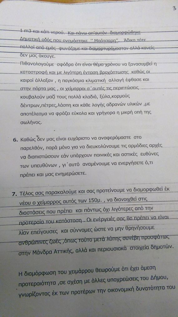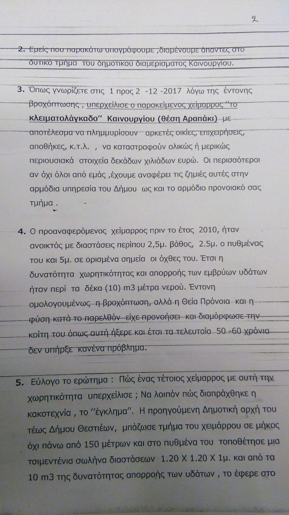 Πάντως ο Γ. Παπαναστασίου και στο θέμα των πλημμυρών δεν έμεινε με σταυρωμένα τα χέρια απέναντι στον Δ. Τραπεζιώτη. Έβγαλε την καταγγελία πολιτών για ρέμα στο Καινούργιο που μπαζώθηκε επί θητείας Τραπεζιώτη στο δήμο Θεστιέων. Η καταγγελία αυτή (δημοσιεύεται στη συνέχεια) σίγουρα δημιούργησε εντυπώσεις για τον πρώην δήμαρχο Θεστιέων… πάνω κάτω τις ίδιες με την ανάγκη του δημάρχου να καταφύγει στο απώτατο παρελθόν για να απαντήσει στον Δ. Τραπεζιώτη…
