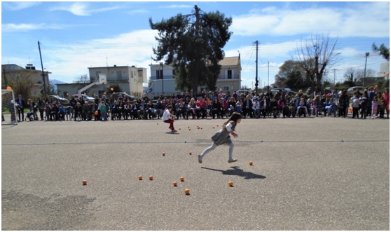Οι μαθητές του σχολείου έκαναν έκθεση με εικαστικές δημιουργίες που εκπόνησαν κατά τη διάρκεια του προγράμματος, περιέγραψαν συνοπτικά τις δράσεις τους, παρουσίασαν αθλοπαιδιές με πορτοκάλια, χάρηκαν με street painting, και face painting.