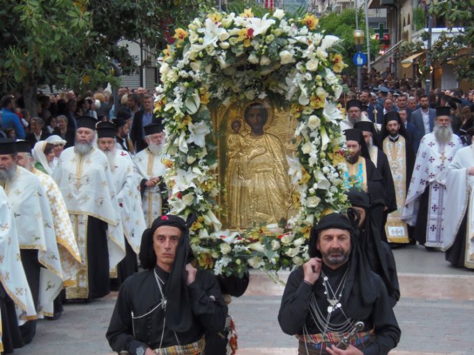 Tη λιτάνευση του ιερού λειψάνου και της εικόνας του Αγίου Χριστοφόρου παρακολούθησε με κατάνυξη πλήθος κόσμου, ενώ συμμετείχαν η φιλαρμονική του δήμου Αγρινίου και τμήματα πολλών πολιτιστικών συλλόγων της πόλης.Στην κεντρική πλατεία τελέσθηκε η αρτοκλασία και μίλησε στο πλήθος του πιστού λαού ο Μητροπολίτης Λαρίσης και Τυρνάβου κ. Ιερώνυμος. Ο Σεβασμιώτατος κ. Ιερώνυμος, με τον γλαφυρό και χειμαρρώδη λόγο του, ανέλυσε το «Αληθώς Ανέστη» ως την απάντηση στον αναστάσιμο χαιρετισμό «Χριστός Ανέστη», ερμηνεύοντας τις διαβαθμίσεις και τις κατηγορίες του. Τονίζοντας την πίστη των χριστιανών και την ευθύνη που απορρέει από αυτήν, αναφέρθηκε σε τέσσερις περιπτώσεις ανθρώπων που είπαν στη ζωή τους το “Αληθώς Ανέστη”: Στους Γραμματείς και Φαρισαίους, στην Παναγία, στον Απόστολο Θωμά και στην Σαμαρείτιδα.