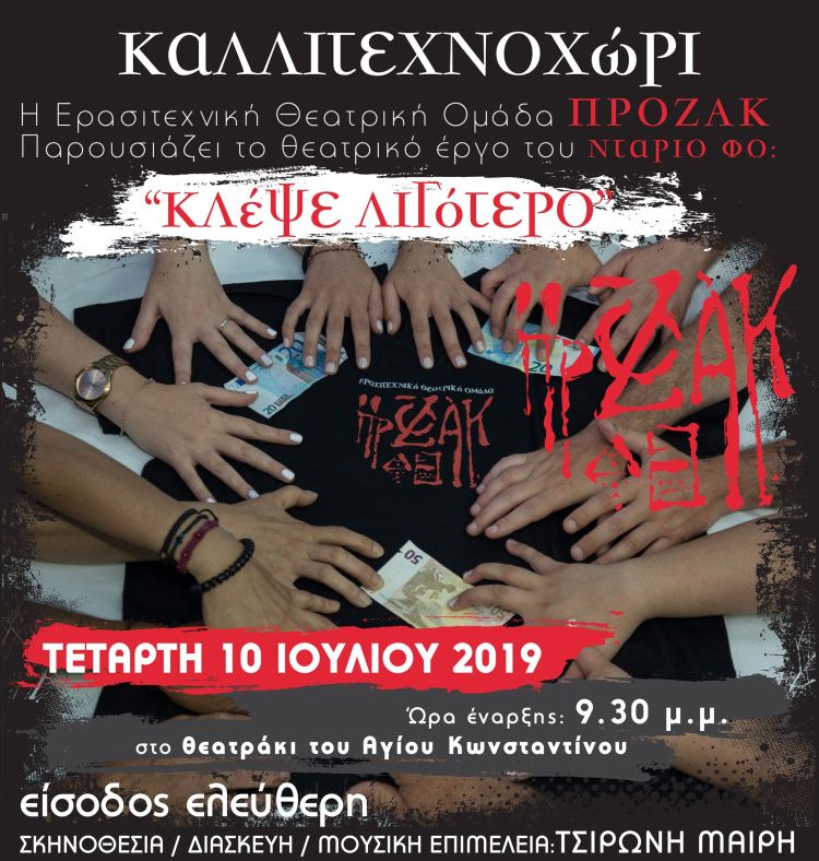 Παρουσιάζει το θεατρικό έργο του ΝΤΑΡΙΟ ΦΟ <<ΚΛΕΨΕ ΛΙΓΟΤΕΡΟ>>