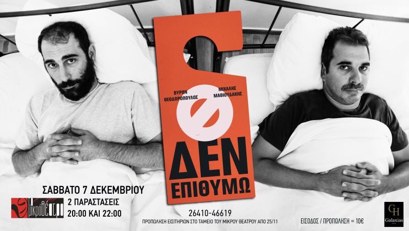 «Δεν επιθυμώ» Η καινούργια stand up comedy παράσταση του Βύρωνα Θεοδωρόπουλου και του Μιχάλη Μαθιουδάκη.