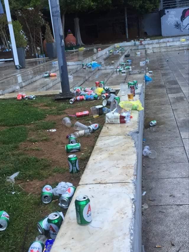 Tουλάχιστον τα συνεργεία καθαριότητας του Δήμου Αγρινίου “τολμούν” να μπουν στην πλατεία Δημάδη έστω και όταν δεν έχει κόσμο. Η Αστυνομία άραγε τολμά να πάει στην πλατεία Δημάδη έστω και όταν δεν υπάρχει κόσμος εκεί; Γιατί, όταν υπάρχει κόσμος στην πλατεία είναι δεδομένο πως είναι “άβατο” για την Αστυνομία. Μάλλον και χωρίς κόσμο “άβατο” είναι η πλατεία για την Αστυνομία. Στη φωτογραφία τα αποτελέσμα της χθεσινοβραδινής μάζωξης. Μόνο σε κανένα καφενείο στα χωριά μπορούν και βάζουν πρόστιμο…
