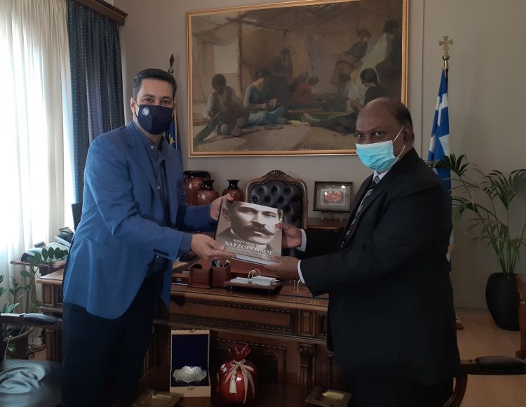 Ο Ινδός Πρέσβης συναντήθηκε με τον Δήμαρχο Αγρινίου στο πλαίσιο προγραμματισμένης επίσκεψης στο Αγρίνιο με αφορμή τη διοργάνωση Πολιτιστικής Δράσης αφιερωμένης στον Μαχάτμα Γκάντι και την Ινδία από τα Εκπαιδευτήρια «Παναγία Προυσιώτισσα».