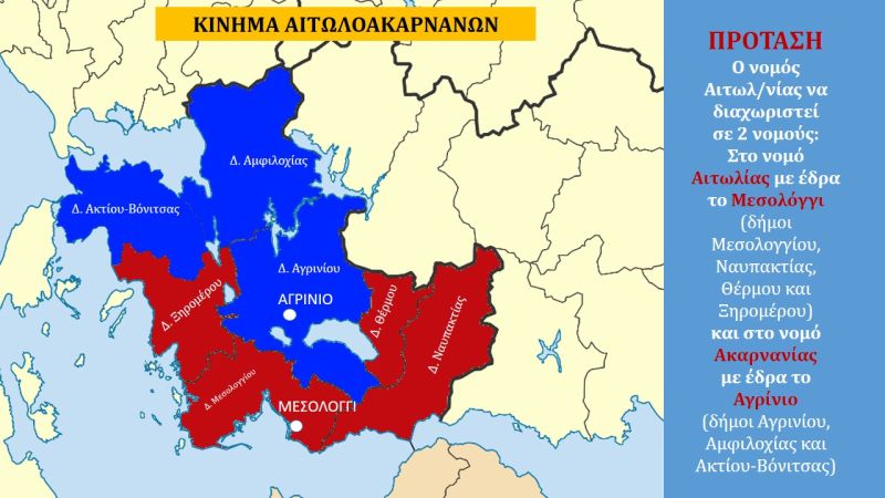 Εμείς ως Κίνημα Αιτωλοακαρνάνων ανοίγουμε τον δημόσιο διάλογο με δημοψήφισμα και θέλουμε ΟΡΙΣΤΙΚΗ ΛΥΣΗ, με τη δημιουργία δύο νομών σε αυτόν της Αιτωλίας με έδρα το Μεσολόγγι και σε αυτόν της Ακαρνανίας με έδρα το Αγρίνιο.