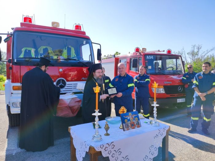 Ο Σεβασμιώτατος ευχήθηκε σε όλους δύναμη και υγεία ενόψει της θερινής περιόδου και της έναρξης της αντιπυρικής περιόδου. Ανέφερε, ότι ενώ για όλον τον πληθυσμό η περίοδος του καλοκαιριού είναι περίοδος ξεκούρασης, για το πυροσβεστικό σώμα είναι μια περίοδος, όπου έρχονται αντιμέτωποι με τις πυρκαγιές, που απειλούν δάση, πόλεις χωριά, Μοναστήρια, Ναούς, αλλά και ανθρώπινες ζωές,