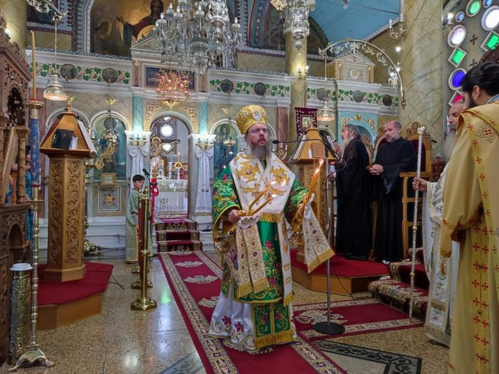 Ο Σεβασμιώτατος χοροστάτησε στην Ακολουθία του Όρθρου και προεξήρχε στην Αρχιερατική Θεία Λειτουργία στον Ιερό Ναό Γενεσίου της Θεοτόκου, με συλλειτουργούς του, τον πρωτοπρ. Γεώργιο Μπίμπο, Προϊστάμενο του Ναού, τον αρχιδιάκονο Στέφανο Καππέ και τον διάκονο Δημήτριο Λαγούδη.