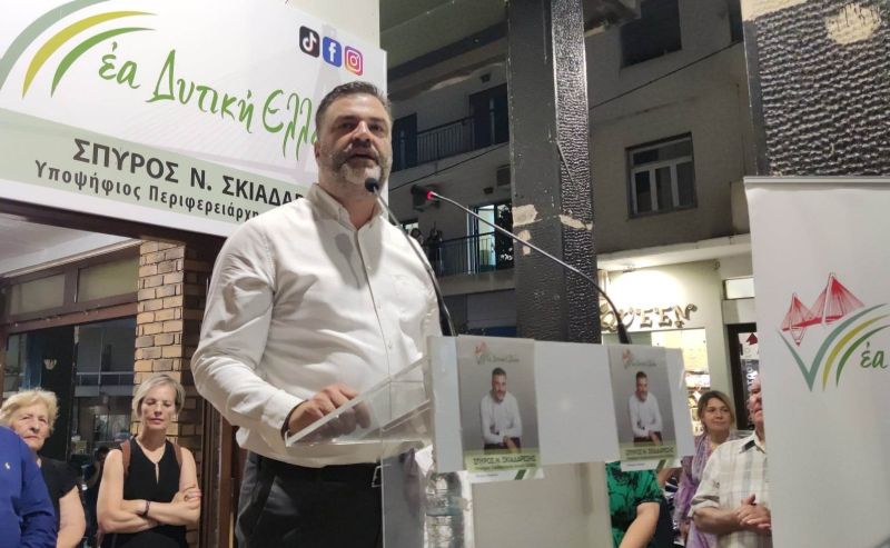Από την πλευρά του ο υποψήφιος περιφερειάρχης Δυτικής Ελλάδας, Σπύρος Σκιαδαρέσης μεταξύ άλλων στην ομιλία του τόνισε ότι στόχος του είναι «να αλλάζουμε αυτό το κατεστημένο που ζήσαμε τα τελευταία τέσσερα χρόνια στη Δυτική Ελλάδα». «Η περιφερειακή αρχή Φαρμάκη» σύμφωνα με το Σπύρο Σκιαδαρέση, «δεν οραματίστηκε κάτι, δεν υλοποίησε τίποτα καινούργιο». Πριν από την παρουσίαση των υποψηφίων περιφερειακών συμβούλων ο Σπύρος Σκιαδαρέσης ανέλυσε τους βασικούς άξονες του προγράμματός του εκτιμώντας ότι «το θέλουμε και το μπορούμε να φέρουμε μια νέα πνοή στη Δυτική Ελλάδα». Εξαπέλυσε παράλληλα σκληρή κριτική στο νυν Περιφερειάρχη λέγοντας χαρακτηριστικά ότι το “όλα από την αρχή έχει μεταφραστεί σε όλα τίποτα”. Και εξήγησε : “σχεδίασε ένα καινούργιο έργο, δημοπράτησε και υλοποιήσε ένα καινούργιο έργο; Όχι! Η κοροϊδία έχει και τα όριά της, γιατί το 2019 ο κ. Φαρμάκης δεν παρέλαβε ιδέες, αλλά έτοιμους φακέλους για νέα έργα”.