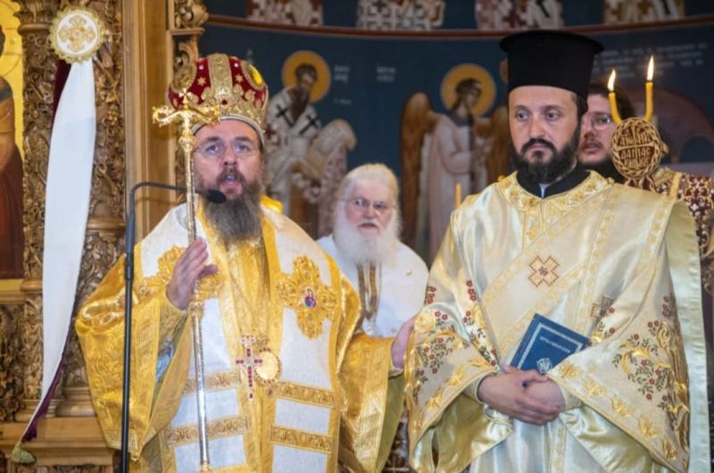 Το μυστήριο της Θείας Ευχαριστίας στην εις διάκονο χειροτονία τέλεσε ο Σεβασμιώτατος Μητροπολίτης Ναυπάκτου και Αγίου Βλασίου κ. Ιερόθεος και συλλειτούργησε και ο σεπτός μας Ποιμενάρχης κ. Δαμασκηνός. Τους δύο Αρχιερείς πλαισίωσε ο Καθηγούμενος της Ιεράς Μεγίστης Μονής Βατοπεδίου, Γέροντας Εφραίμ, κληρικοί από την τοπική Εκκλησία και από άλλες Μητροπόλεις, ενώ παρέστησαν οι τοπικές αρχές, κλήρος και λαός.