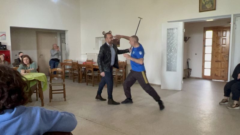 Μαθήματα αυτοάμυνας αλλά και πρακτικές συμβουλές για την ασφάλεια και την αποφυγή συγκρούσεων, δίδαξε σήμερα σε μέλη του ΚΑΠΗ Μεσολογγίου ο προπονητής του Συλλόγου «ΓΑΣ Μαχητές Μεσολογγίου» και δάσκαλος μαύρης ζώνης 7ου dan στο Tae Kwon Do, κος Σωτήρης Λιαμέτης.
