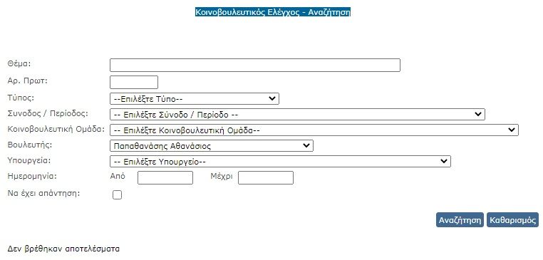 Μεταξύ αυτών «καρφώνεται» σε δημοσιεύματα του αθηναϊκού Τύπου και ο βουλευτής Αιτωλοακαρνανίας της ΝΔ Θανάσης Παπαθανάσης, ο οποίος όντως δεν έχει υποβάλει, αυτούς τους 15 σχεδόν μήνες που είναι βουλευτής, ούτε μία κοινοβουλευτική ερώτηση. Το ίδιο ισχύει και για τους βουλευτές Επικρατείας Μαρία Νεφέλη Χατζηιωαννίδου και Γιώργο Σταμάτη και τη βουλευτή Καβάλας Αγγελική Δεληκάρη.