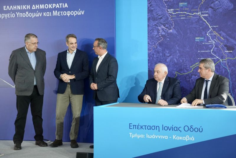 Στο κλειστό γυμναστήριο του Καλπακίου, παρουσία του Πρωθυπουργού, Κυριάκου Μητσοτάκη, και με πανηγυρικό τρόπο υπογράφθηκε χθες η σύμβαση για την επέκταση της Ιόνιας Οδού και την κατασκευή του Τμήματος Γιάννενα – Κακκαβιά, που έχει προϋπολογισμό 310 εκατ. ευρώ. Το έργο εκτιμάται ότι θα ολοκληρωθεί σε 54 μήνες από σήμερα, δηλαδή σε τεσσεράμισι χρόνια, καθώς πρόκειται για ένα απαιτητικό τεχνικά έργο, που στα 70 χλμ της διαδρομής μεταξύ άλλων περιλαμβάνει 12 ανισόπεδους κόμβους, πέντε γέφυρες και μία σήραγγα.