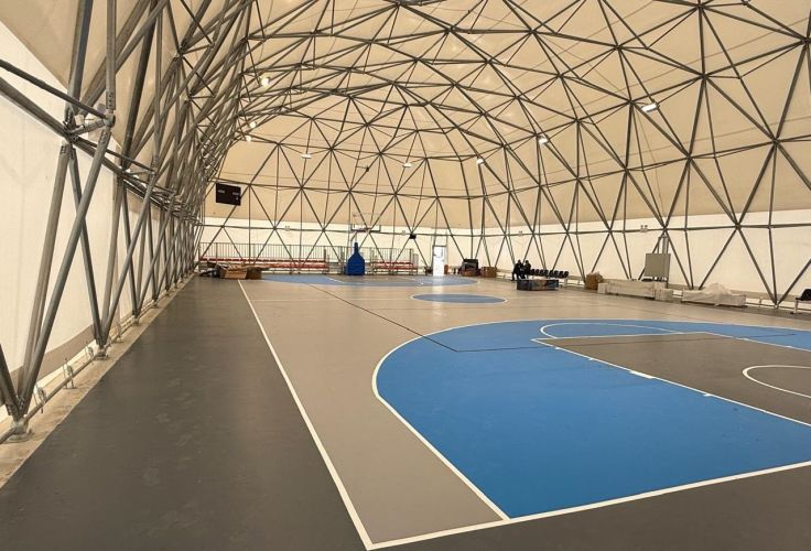 • Μερικώς αεροϋποστηριζόμενο θόλο διαστάσεων 20×36 μ., με θερμομονωμένο κέλυφος,