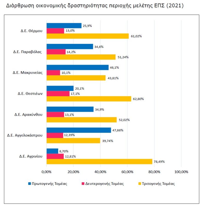 Με βάση τα στοιχεία παρουσιάστηκαν πρόσφατα από τους μελετητές του Ειδικού Πολεοδομικού Σχεδίου για τους δήμους Αγρινίου και Θέρμου προκύπτουν κάποια ενδιαφέροντα στοιχεία αναφορικά με την οικονομική δραστηριότητα στην περιοχή.