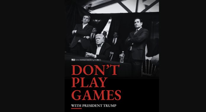Οι δε αναρτήσεις του επικοινωνιακού μηχανισμού Τραμπ στα social media, όπως στη φωτογραφία, από το State Department, έρχονται να πολλαπλασιάσουν την ισχύ του μηνύματος που εκπέμπει το Οβάλ Γραφείο.