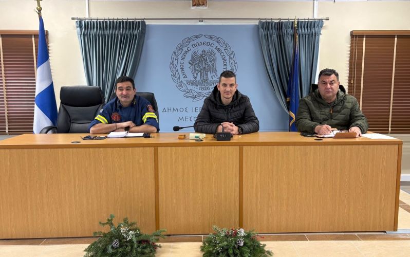 Έκτακτη συνεδρίαση του Τοπικού Επιχειρησιακού Συντονιστικού Οργάνου Πολιτικής ΠροστασίαςΔήμου Ιερής Πόλης Μεσολογγίου πραγματοποιήθηκε στο Δημαρχείο σήμερα Τετάρτη, 7 Ιανουαρίου 2026, ενόψει των έντονων καιρικών φαινομένων που προβλέπεται να εκδηλωθούν, σύμφωνα με το Έκτακτο Δελτίο Επιδείνωσης Καιρού της ΕΜΥ (1/2026).
