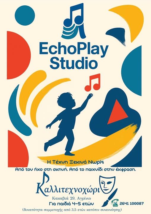 Το Καλλιτεχνοχώρι εγκαινιάζει το EchoPlay Studio, ένα σύγχρονο καλλιτεχνοπαιδαγωγικό εργαστήριο για παιδιά 4–5 ετών (με δυνατότητα συμμετοχής από 3,5 ετών κατόπιν συνεννόησης).