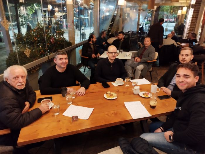 Σε κλίμα ευχάριστης επικοινωνίας και συναδελφικής αλληλεγγύης, οι ιεροψάλτες είχαν την ευκαιρία να ανταλλάξουν ευχές για το νέο έτος. Την βασιλόπιτα ευλόγησαν οι πατέρες Δημήτριος Αντωνίου και Κοσμάς Παππάς, ενώ μας τίμησε με την παρουσία του και ο πατήρ Βασίλειος Αγγελάκης.