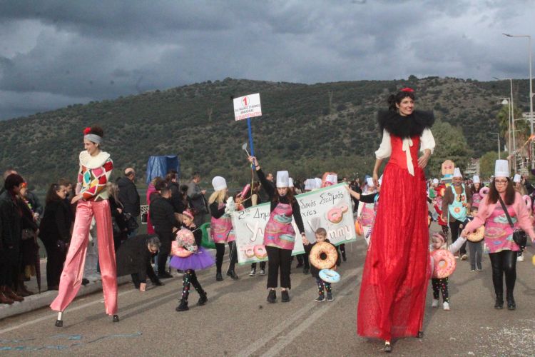 Οι καρναβαλιστές, αψηφώντας τον συννεφιασμένο καιρό, συμμετείχαν στην παρέλαση με ευφάνταστες μεταμφιέσεις, σκορπίζοντας κέφι και χαμόγελα στον κόσμο που συγκεντρώθηκε κατά μήκος του δρόμου.