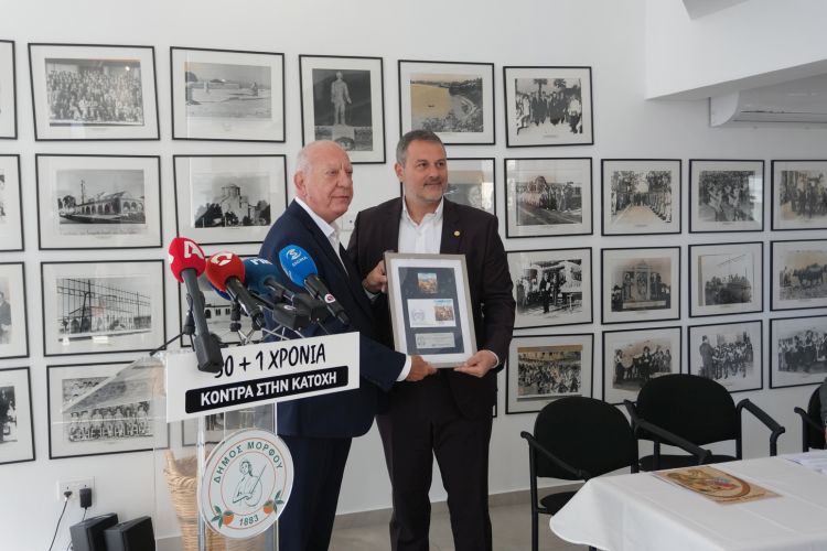 Επετειακό γραμματόσημο παρουσίασαν τα Κυπριακά Ταχυδρομεία στον αδελφοποιημένο Δήμο Μόρφου