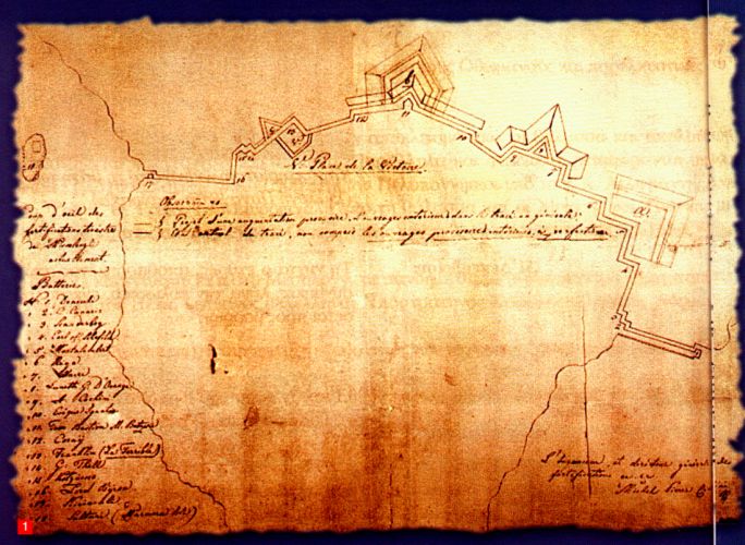1 – Κανονοστάσιο Σαχτούρης (προς τιμή του Υδραίου ναυάρχου). Ο προμαχώνας αυτός βρισκόταν επί της νησίδας Μαρμαρού στο Βορειοδυτικό άκρο του χερσαίου τείχους.
