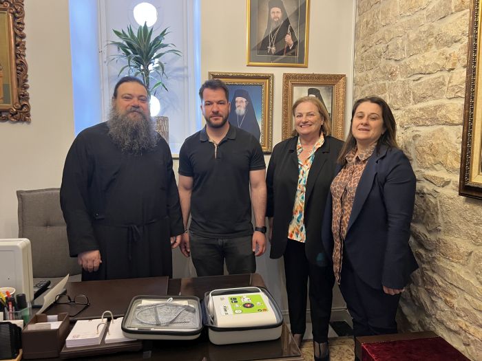 Ο απινιδωτής έχει τοποθετηθεί σε εύκολα προσβάσιμο και ασφαλές σημείο εντός του Ιερού Ναού, ώστε να είναι άμεσα διαθέσιμος σε περίπτωση ανάγκης καθ’ όλη τη διάρκεια των εκδηλώσεων.